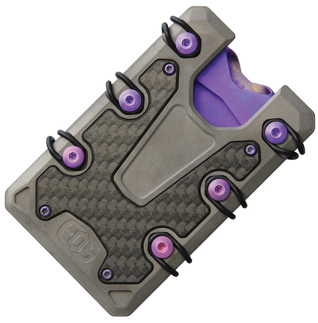 EOS 3.0 Titanium Sasha Wallet EOS051, Gray Carbon Fiber Construction, Purple Anodized Hardware