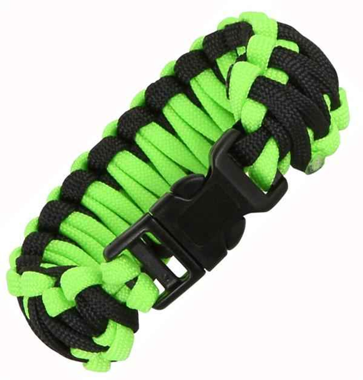 Knotty Boys Black and Neon Green Survival Bracelet Fat Boy style. Size: Medium