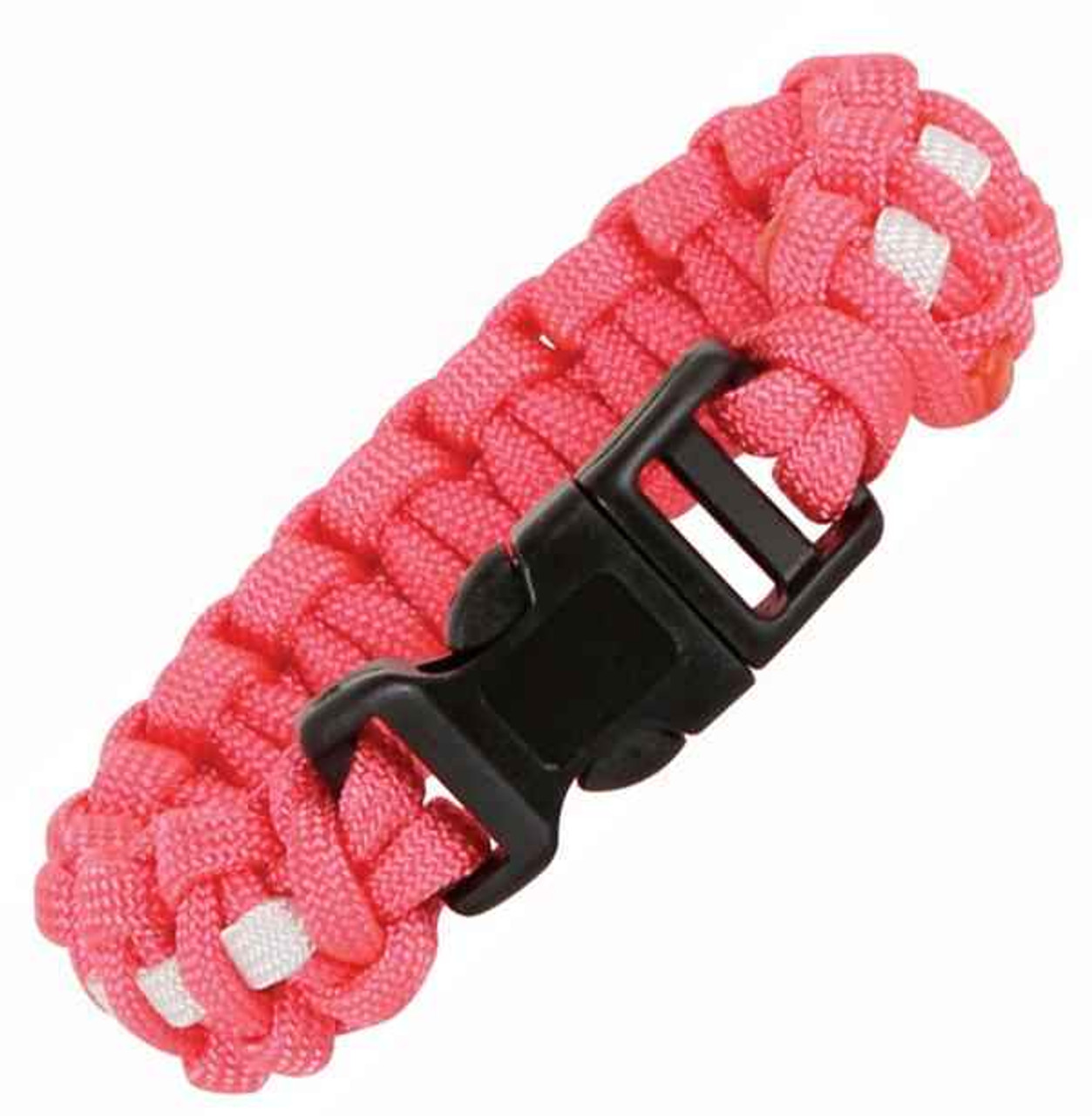 Knotty Boys Breast Cancer Awareness Survival Bracelet – Single Weave. 8″ diameter (medium size). Hand tied nylon cord. Enables you to carry several feet of nylon cord that can be used in an emergency for countless survival applications. One inch of wrist diameter equals approximately one foot of cord. 5/8″ release buckle. Color: Hot pink and white. Produced in an effort to raise money for the cure & the awareness of breast cancer and reduce the disease’s stigma by educating people about it’s symptoms and treatment options.