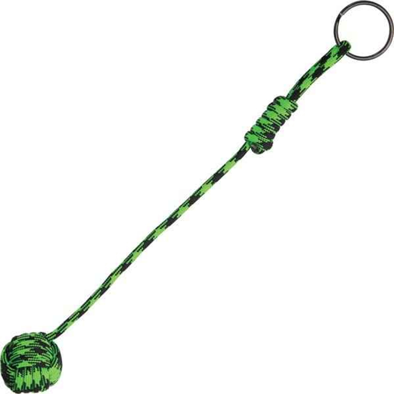 Knotty Boys Zombie Monkey Fist. Neon green and black. Hang packaged with slogan “Get your ZOMBIE or Go Home!