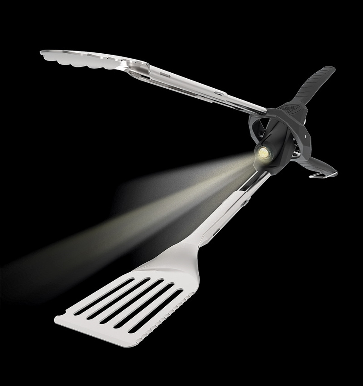 See the flavor with Outdoor Edge’s new illuminating grill-tongs and spatula/tong combo. The Grill-Beam integrates a 22 lumen LED flashlight in the pivot to put the spot light on your culinary masterpiece, any time of day or night. Each tool features a sliding shaft that telescopes and locks for the option of a shorter, more controllable 14-5/8″ tool, or expand to a full-length of 17″ to safely navigate a flaming grill. The flashlight and ends of each tool are removable for easy cleaning. The handle features a built-in bottle opener to keep the chef hydrated. Sturdy 304 stainless steel plus Zytel glass/nylon handle construction is build strong to lift a heavy roast, and will ensure a lifetime of use.