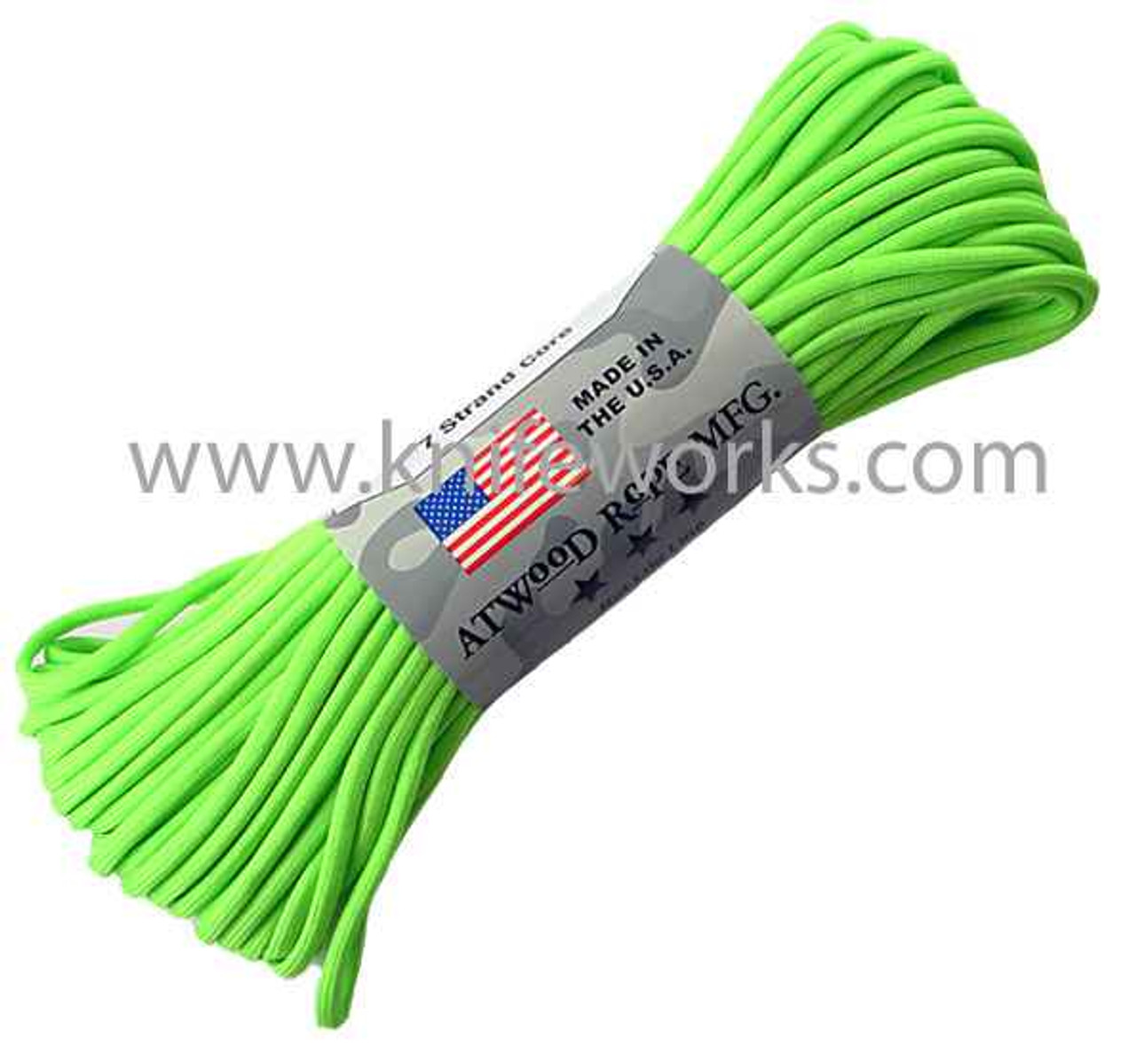Parachute Cord Neon Green. Nylon construction. 100 ft. length