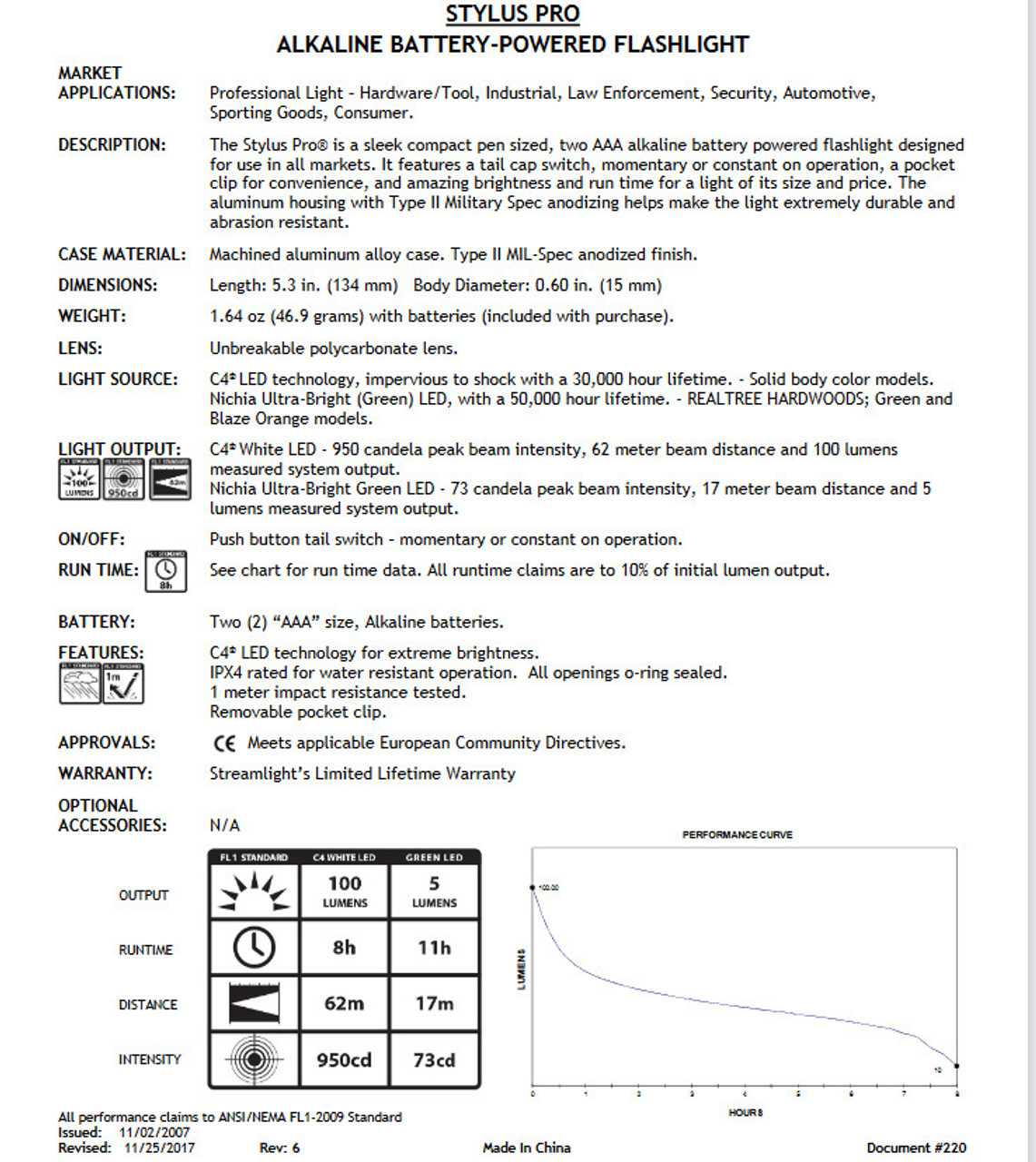 - Type II MIL-SPEC abrasion and corrosion-resistant anodized aircraft aluminum construction with unbreakable, scratch-resistant polycarbonate lens