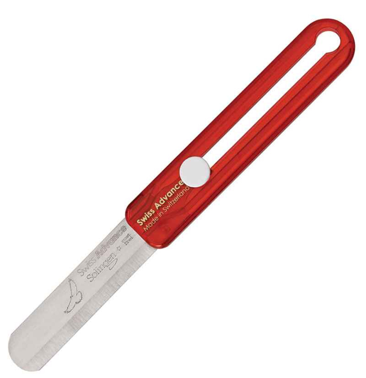 Swiss Advance Hippus Travel Knife is 3 3/4″ closed with interlock mechanism. Red PCTG Co polyester handle is Eco-friendly, BPA-free, and food safe and has a Stainless knife blade.