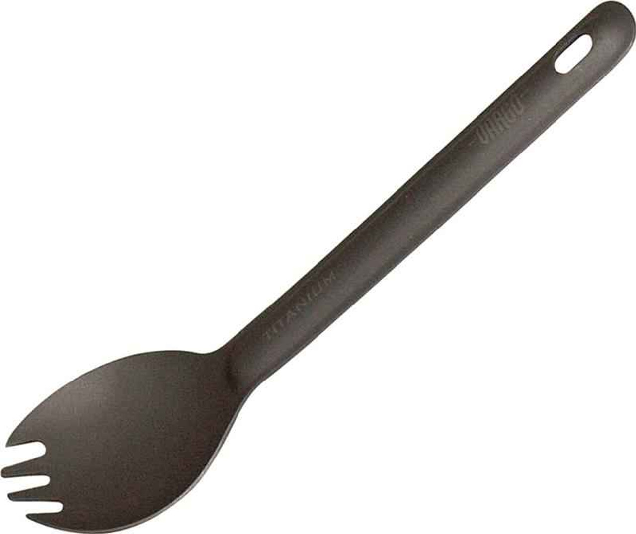 The Titanium Spork weighing in at almost a third of an ounce, is one of the lightest pieces of cutlery available. This Ultra Light Version is bio-compatible, has a matte finish, and is made of pure titanium. The spork features an extra wide bowl for great functional use and better eating.