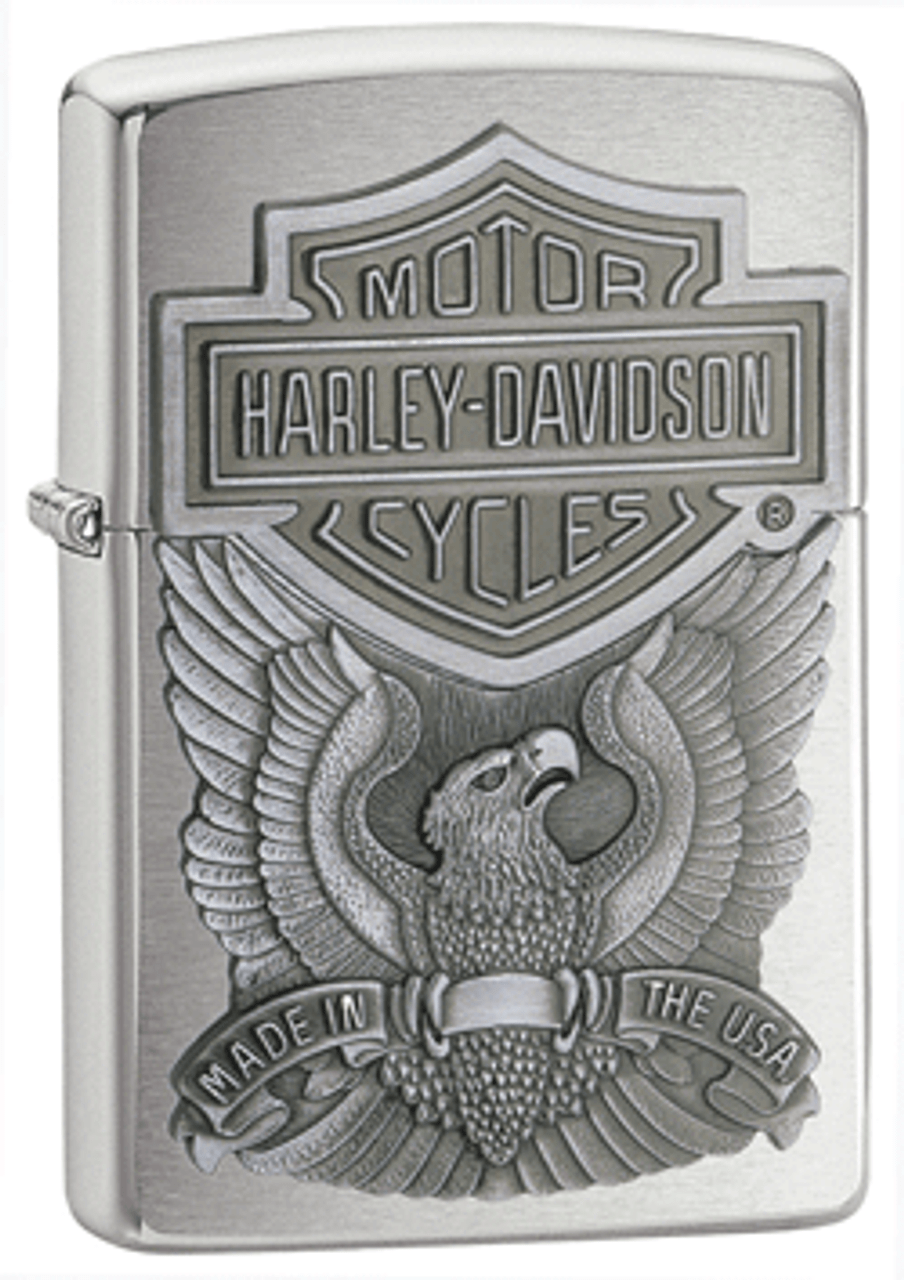 Zippo Classic Lighter, Harley Davidson “Made in the USA” Emblem, Brushed Chrome