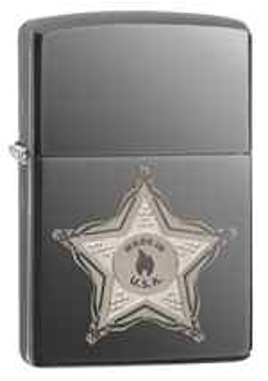 Become the new sheriff in town with this windproof lighter. This five star lighter with made in USA text and Zippo flame is a striking design that stands out against the Black Icefinish of this lighter. Comes packaged in an environmentally friendly gift box. For optimal performance, use with Zippo premium lighter fluid.