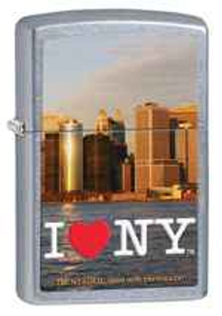 Zippo Classic Lighter, “I Love New York” Skyline Image, Street Chrome