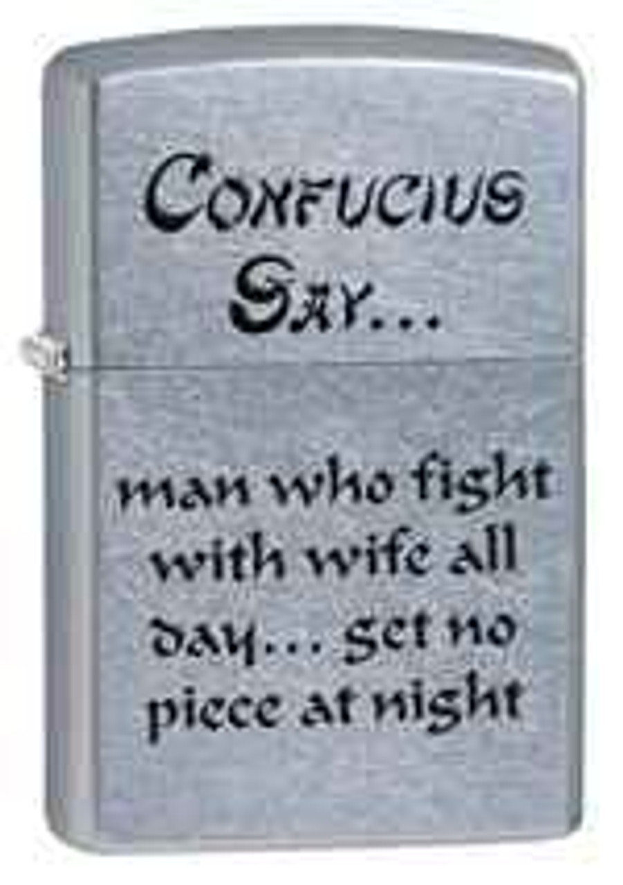 Zippo ClassicLighter, “Confuscius Say” Man w/ Wife, Street Chrome