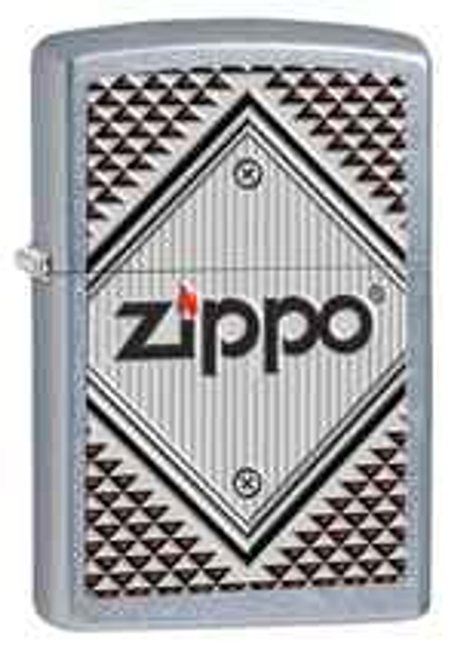 The geometric shapes and design of this windproof lighter give it a rugged look. This Street Chrome lighter displays the Zippo logo on a bolted sign with red and black triangles framing the sign. Comes packaged in an environmentally friendly gift box. For optimal performance, use with Zippo premium lighter fluid.