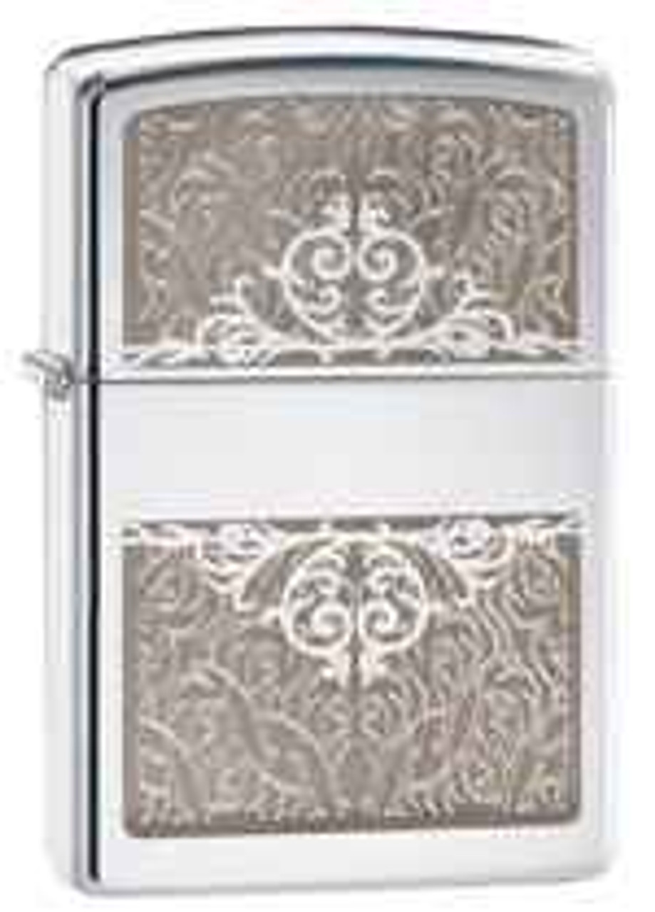 This high polish chrome windproof lighter has an elegant look and feel. With an engraved floral design and an intertwining heart design, this lighter makes a great gift. Comes packaged in an environmentally friendly gift box. For optimal performance, use with Zippo premium lighter fluid.